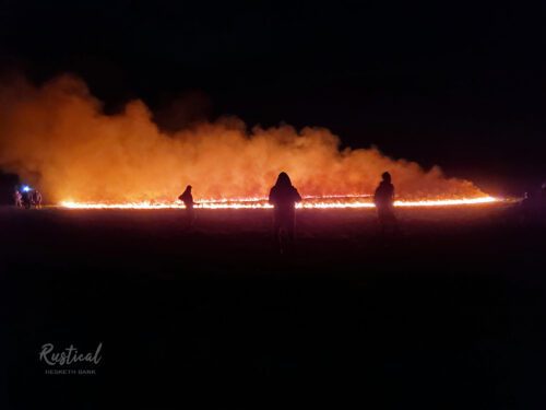 Time slowed. As the smoke started to rise, the fire illuminated it, so it felt like were standing within a glowing red dome. The fire team did a fantastic job. Lighting their section first, helping their neighbour if they needed help, and then getting out as quickly and safely as possible. Within minutes we were all out of shot and gathered around the laptop at the command centre to watch the drone footage.