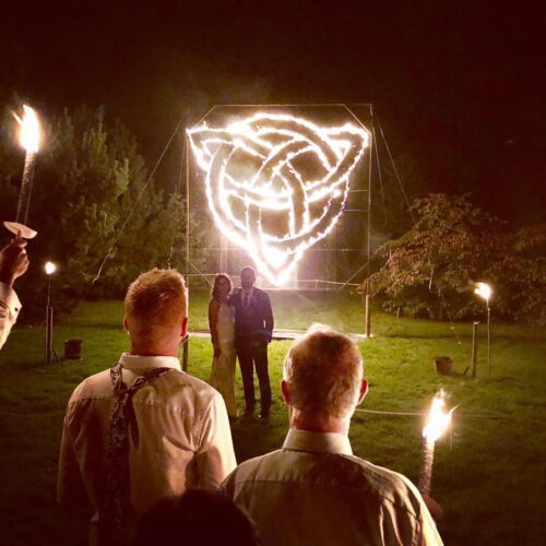 I had made a fire sculpture for my friend’s wedding the year before. I created a 4mx4 Celtic knot design and knew I could use the same technique to write the words “Crop Circle 2”.